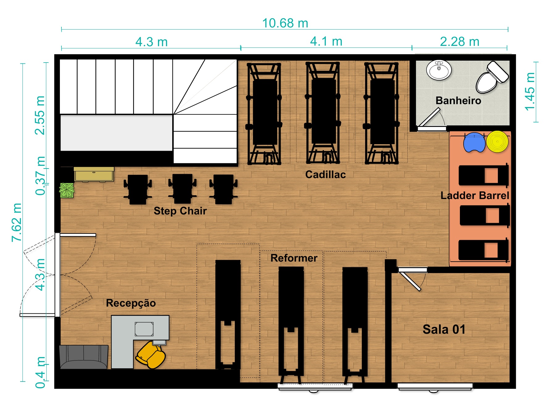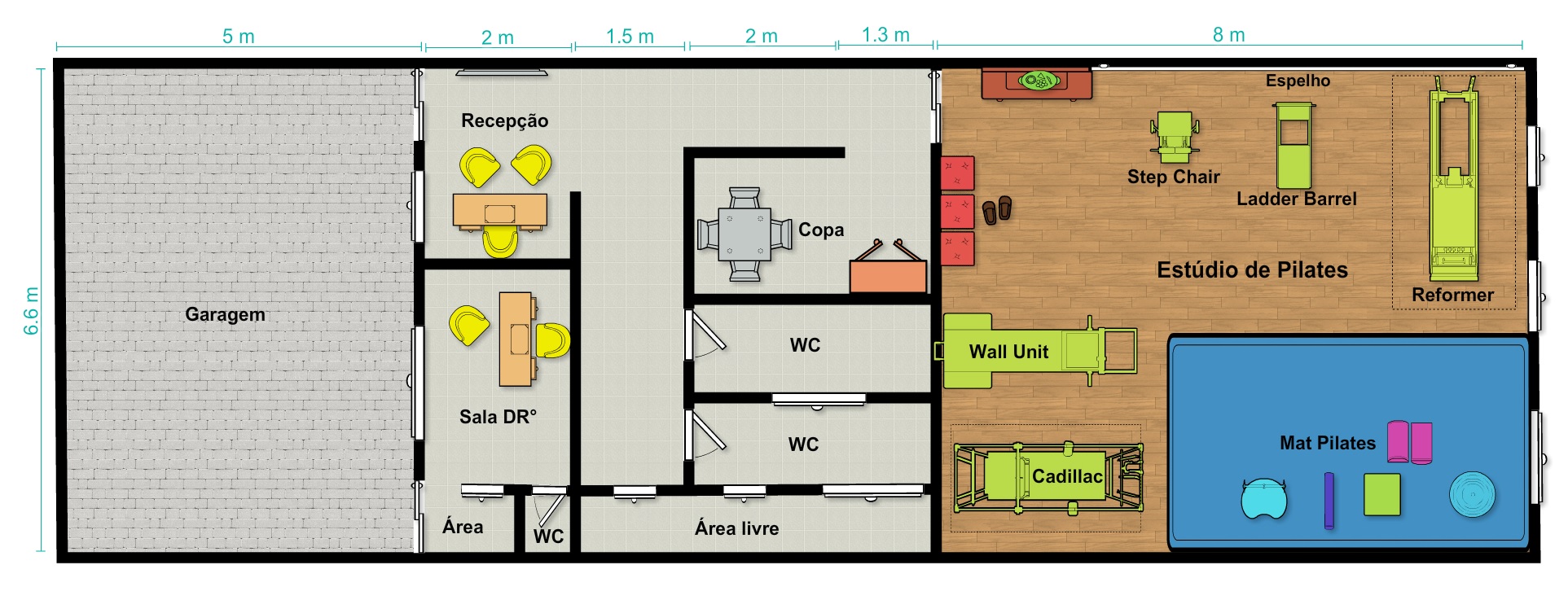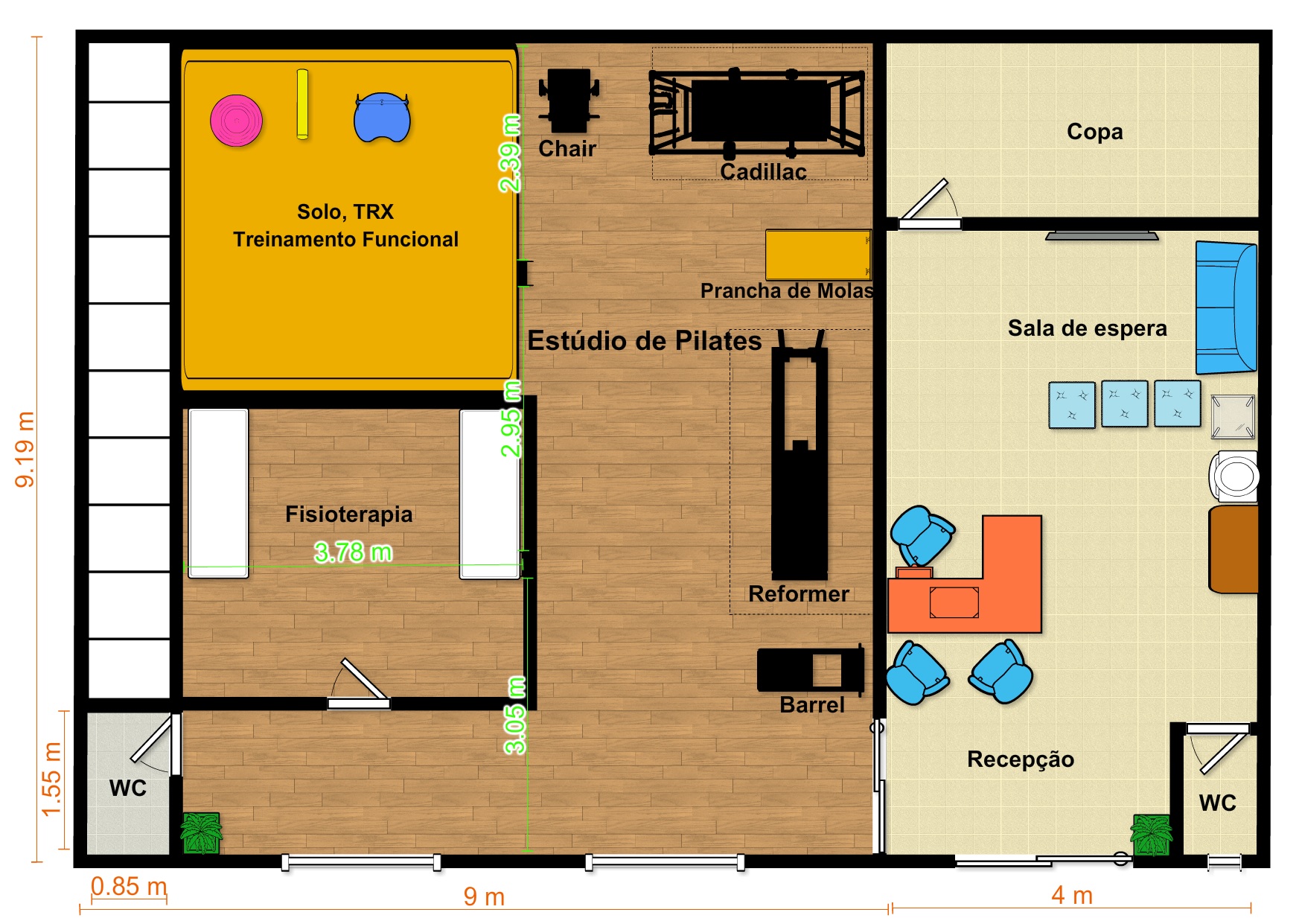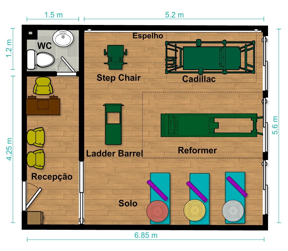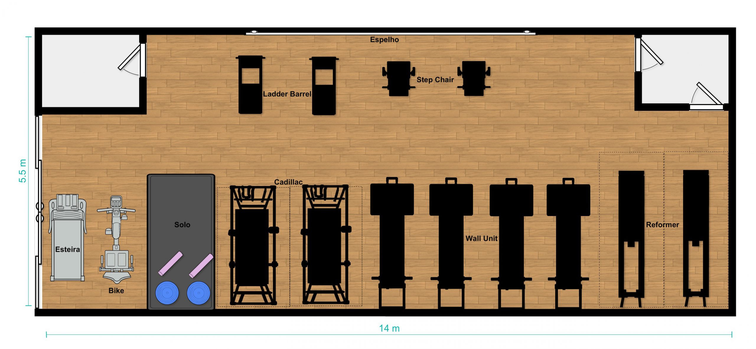 Mas se você já adquiriu os aparelhos e está se preparando para a etapa de montar um studio de pilates, ainda assim um layout é importante. Ele permitirá que você veja várias opções de otimizações possíveis, até chegar na ideal.